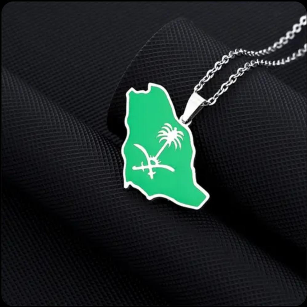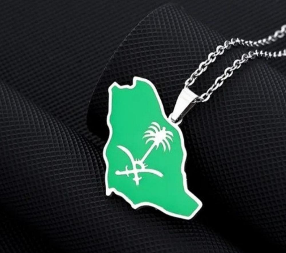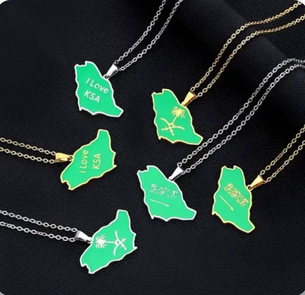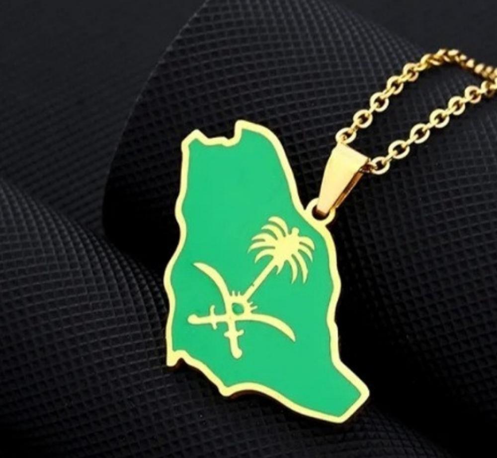 سلسال خريطة المملكة مع العلم الأخضر مطلي بالذهب ضد الصدأ