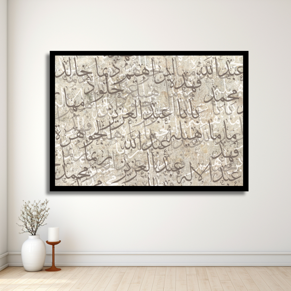 عند الطلب، عليك تزويدنا في خانة الملاحظات بالاسم الذي ترغب في كتابته في تصميم اللوحة